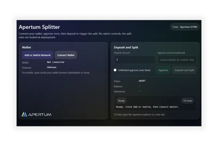 Deploy a splitter with locked rules, predictable distribution, and full on chain transparency.